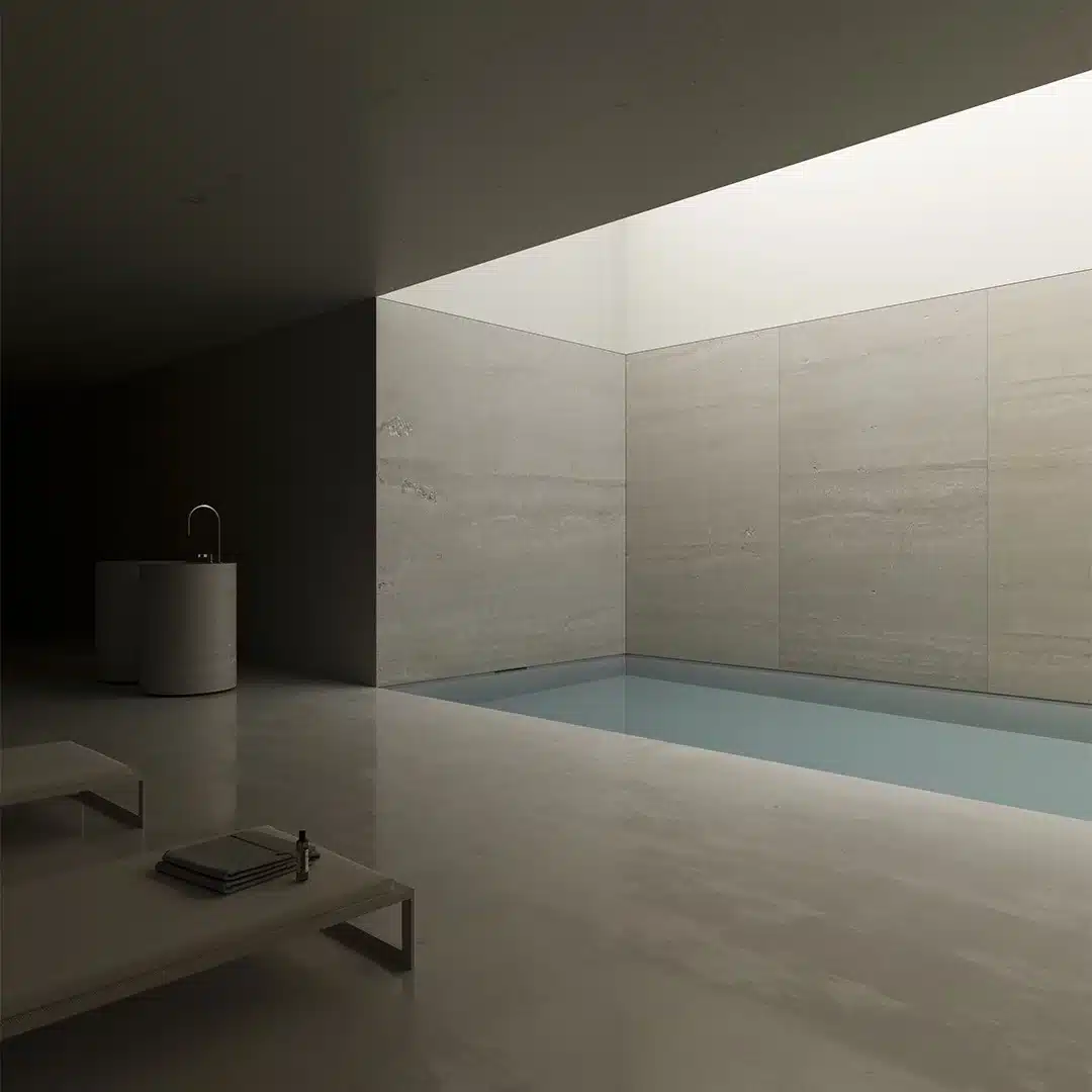 El vaso de la piscina se construye mediante diferentes técnicas de hormigonado y posteriormente se reviste con materiales específicos para garantizar la estanqueidad y el acabado final.